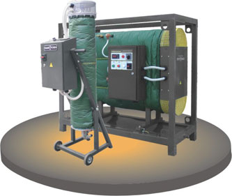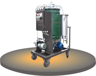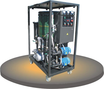La instalación de purificación de aceite consiste en: - calentador del aire; - soplador del aire; - enfriador del aire; - bomba de vacío.; - equipo del mando; - marco-fondo sobre los rollos movedizos; - elementos tecnológicos unidos con mangueras flexibles - aparato de escape