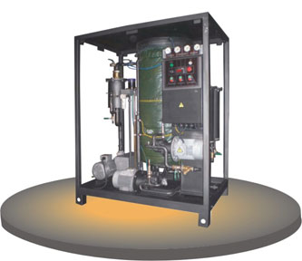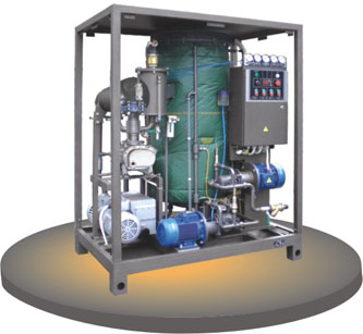 La instalación consiste en las bombas de aceite, unos filtros de purificación fina y dura, un receptáculo de vacío, una bomba de vacío, un armario del mando, un sistema de tubos. La cadena del mando está protegida con un interruptor automático.
